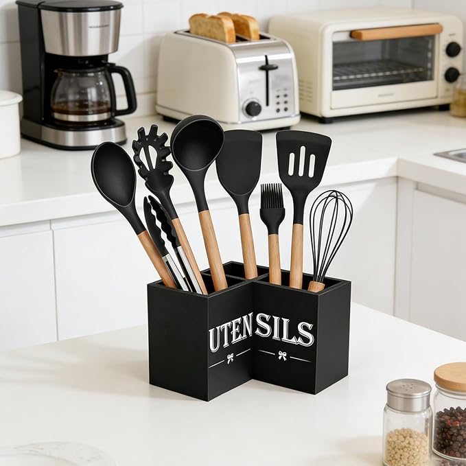 Too many utensils crammed into a bulky holder can make your bench look crowded.